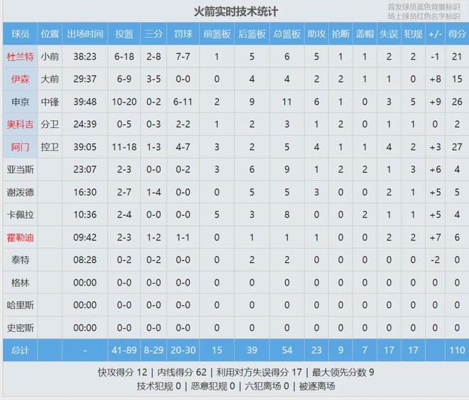 独行侠放手一搏,对申京也上夹击,其他点肯定漏人。火箭同样拿出高强度防守,拉塞尔多次强投不中。全场结束,火箭110-102击败独行侠,恭喜火箭拿到4连胜。阿门27分5板4助、申京26分11板6助、杜兰特21分6板5助。