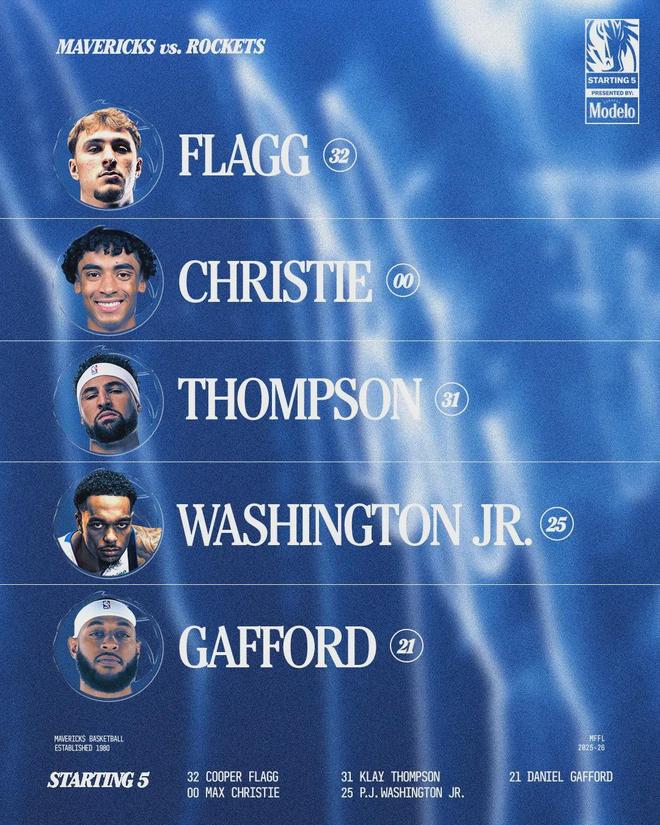 火箭本场首发:阿门-汤普森、奥科吉、杜兰特、伊森、申京。独行侠首发:弗拉格、克里斯蒂、克莱-汤普森、PJ-华盛顿、加福德。截至今天赛前,弗拉格场均13.8分6.5篮板3助攻1.8失误,三项命中率:37.3%,28.6%,100%。