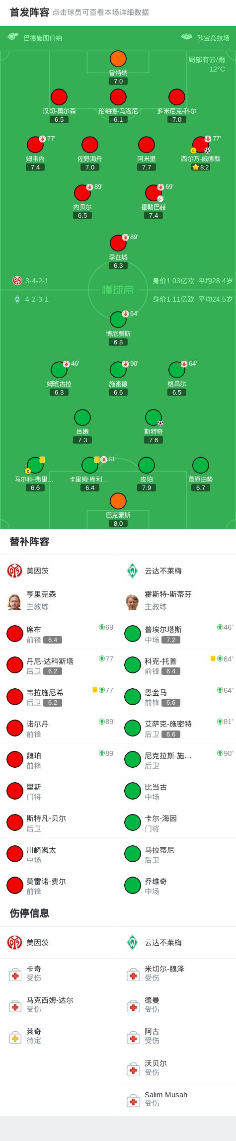 美因茨1-1云达不莱梅,西尔万-威德默打破僵局,斯特奇扳平